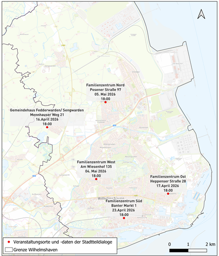 Die Veranstaltungen finden in den Familienzentren der jeweiligen Stadtteile sowie im Dorfgemeinschaftshaus Fedderwarden–Sengwarden statt.