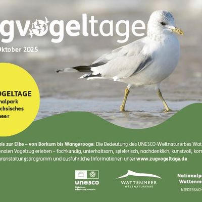 Vom Dollart bis zur Elbe – von Borkum bis Wangerooge: Die Bedeutung des UNESCO-Weltnaturerbes Wattenmeer für den internationalen Vogelzug erleben – fachkundig, unterhaltsam, spielerisch, nachdenklich, kunstvoll, kompetent, kulinarisch.
