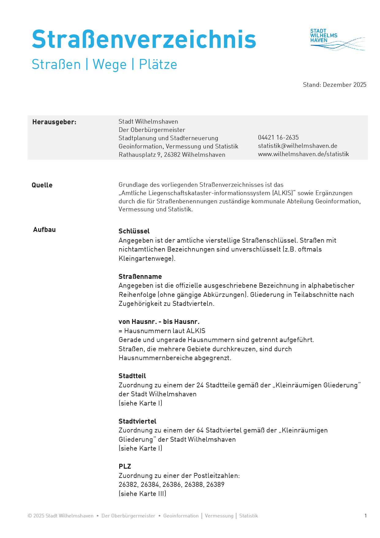 Straßenverzeichnis Wilhelmshaven